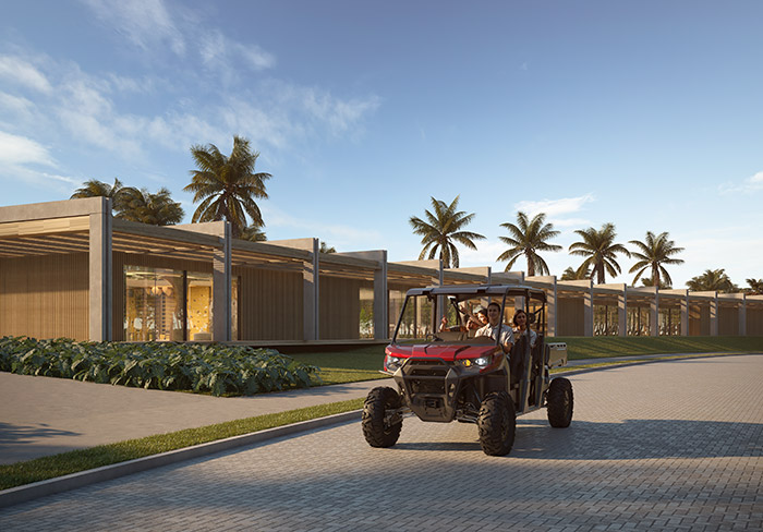 Para maior comodidade, veículos exclusivos fazem o transporte interno sob demanda, reduzindo a circulação de carros e facilitando o acesso à praia. Além disso, ciclovias e alamedas arborizadas atravessam o condomínio, criando corredores ecológicos ideais para caminhadas, passeios de bicicleta e momentos de convivência.